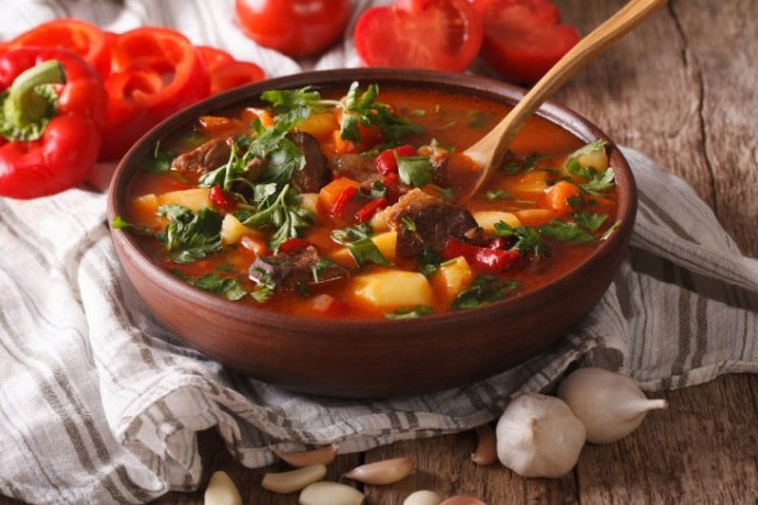 Технологія приготування справжніх карпатських страв нерозривно пов'язана з живим вогнем, відкритими вогнищами та масивним чавунним посудом, що рівномірно розподіляє тепло. Бануш, який по праву вважається енергетичною основою гуцульського раціону, готують виключно на свіжих вершках або домашній сметані, безперервно помішуючи масу дерев’яною ложкою за годинниковою стрілкою, доки на поверхні не з’являться перші краплі розтопленого золотавого жиру. Ця кукурудзяна каша традиційно доповнюється розсипчастою овечою бринзою, що тривалий час дозрівала у дерев’яних бербеницях, або хрусткими гарячими шкварками з витопленого сала. Не менш важливим кулінарним ритуалом є приготування бограча — густого м'ясного гуляшу, в який закладають три-чотири види м’яса, масивну копчену рульку та надзвичайно велику порцію сухої паприки, а фінальним штрихом стає занурення у котел палаючої фруктової головні, що миттєво надає страві глибокого димного відтінку та специфічного гірського духу.