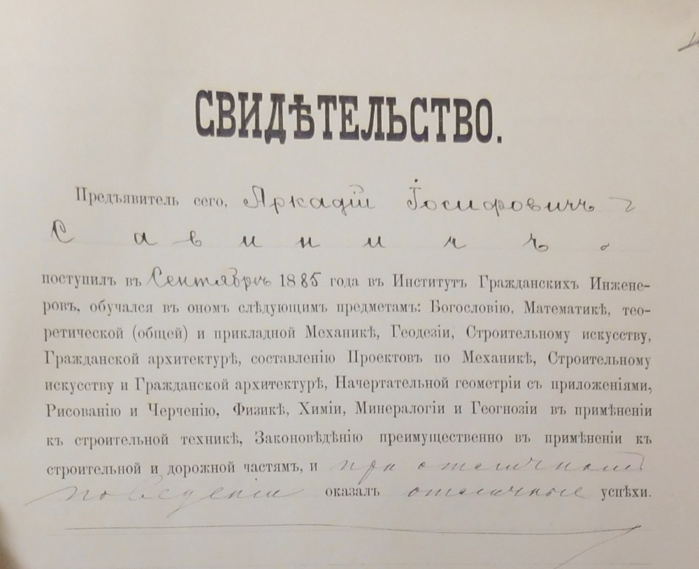 С 1910 по 1916 год должность губернского архитектора занимал инженер Аркадий Иосифович Савинич. К моменту назначения на эту должность, за плечами Аркадия Иосифовича был уже солидный опыт и авторитет в профессиональных кругах.