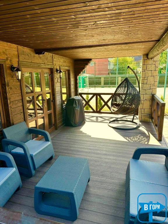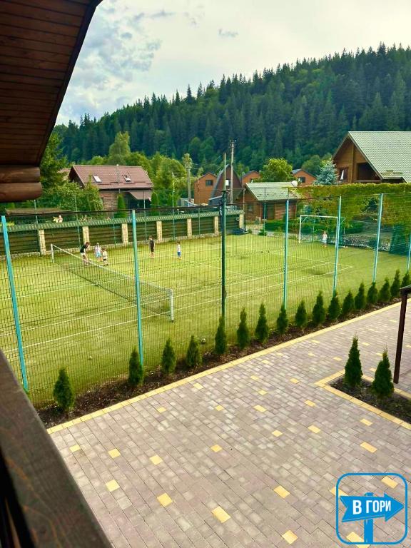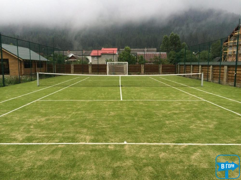 Поруч є власний спортивний майданчик для гри у волейбол, баскетбол, футбол, тенісний корт.