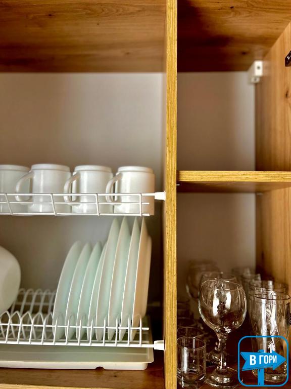 Гости могут самостоятельно готовить еду. Кухни полностью оборудованы плитой, холодильником, микроволновкой и посудой.
