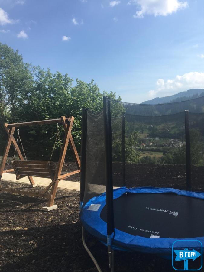 Здесь вас ожидают комфортабельные номера, а также детская площадка, батут и качели для развлечений малышей.