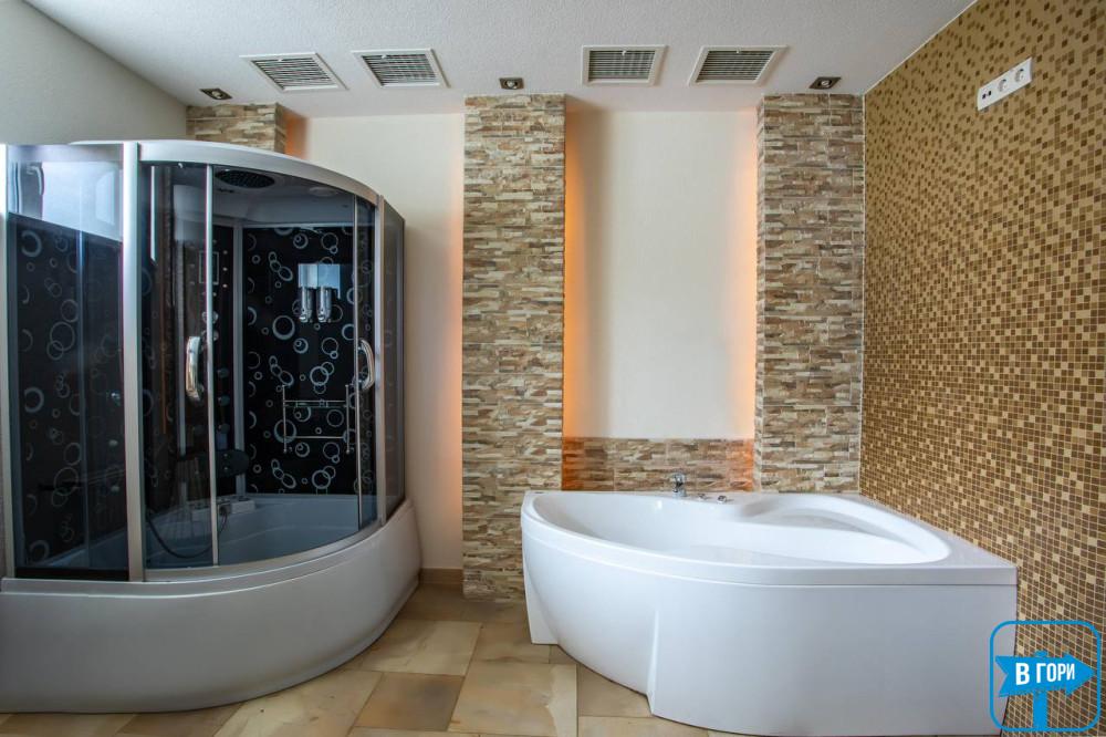 - Финская сауна с контрастным бассейном – то, что следует после горных прогулок. В помещении сауны также есть джакузи и гидробокс для вашего релакса. Ну и, конечно, вы просто обязаны погреться в карпатском чане! (планируется на зиму)