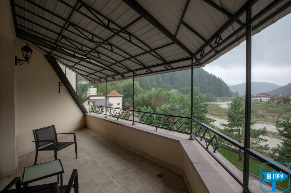- Отель находится в живописном месте на берегу реки, а с каждого номера открывается невероятный вид на горы.