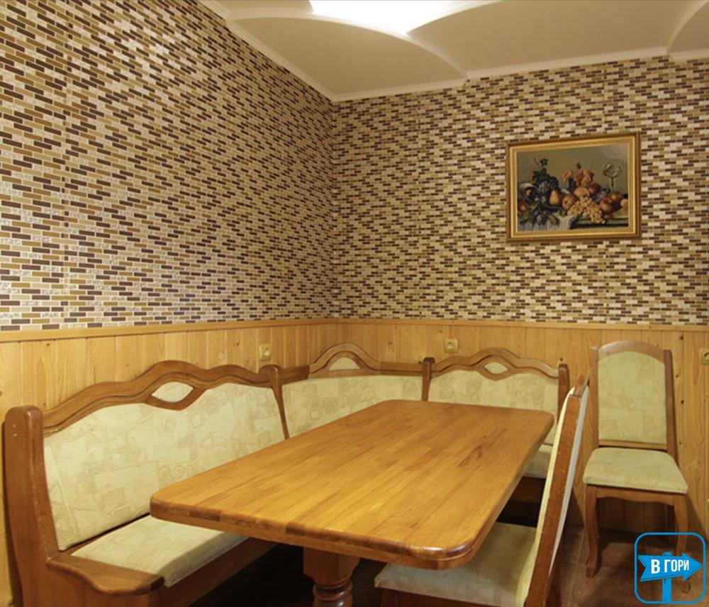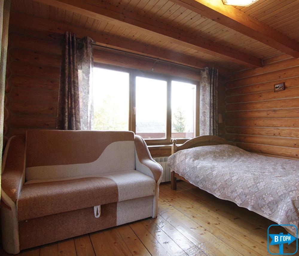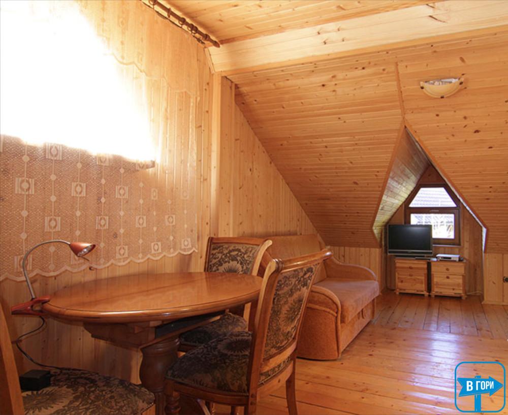 2 двухкомнатных номера - "Буковина" и "Карпаты". В каждом - спальня (двуспальная кровать, телевизор), гостиная (раскладной диван, телевизор, шкаф для одежды), балкон, санузел (душ, туалет, умывальник).