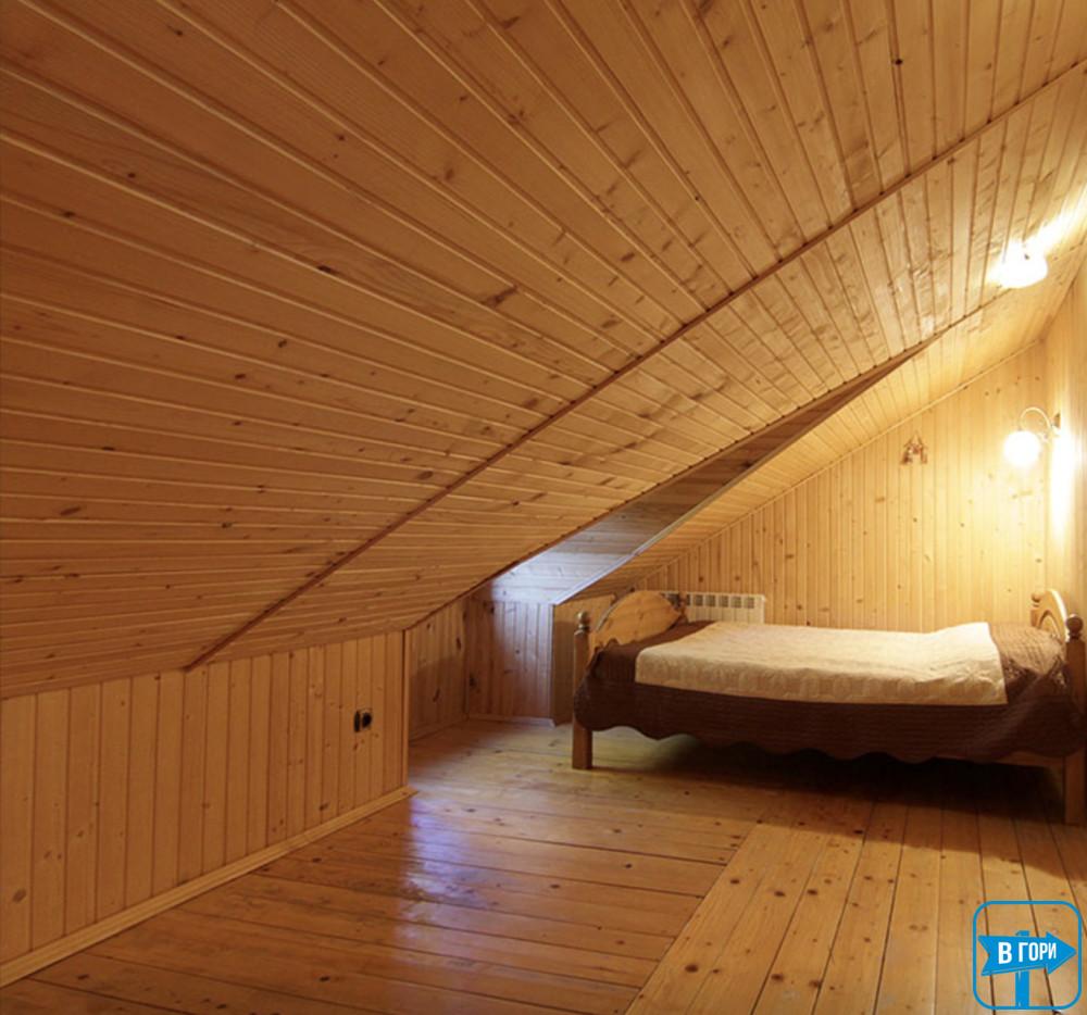 На третьем этаже - однокомнатный номер мансардного типа "Большая Массандра" (двуспальная кровать, 2 раскладных дивана, стол, стулья, вешалка для одежды, телевизор, посуда, санузел - туалет, умывальник, душевая кабина).