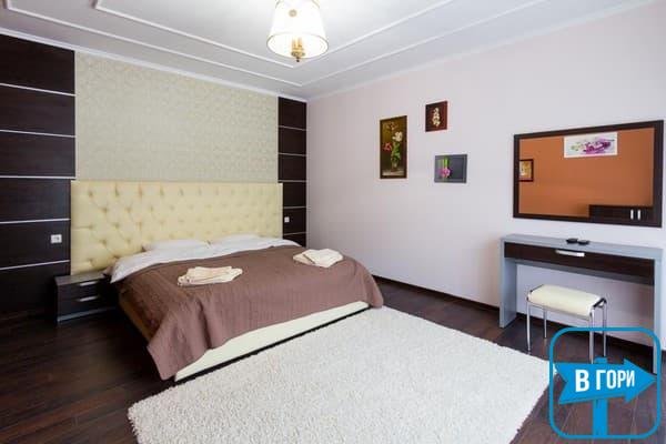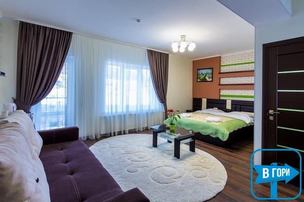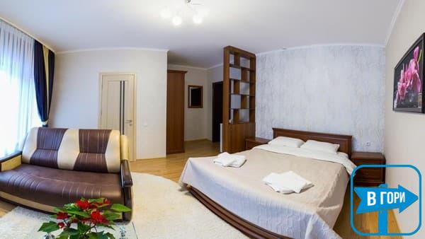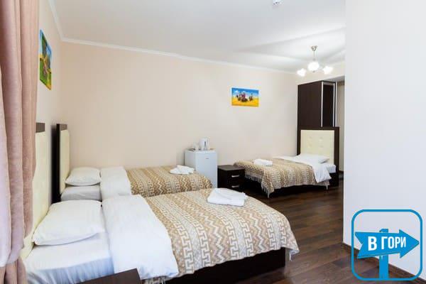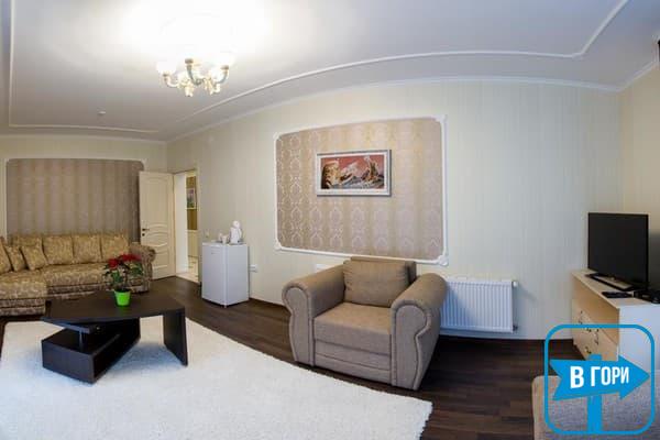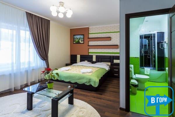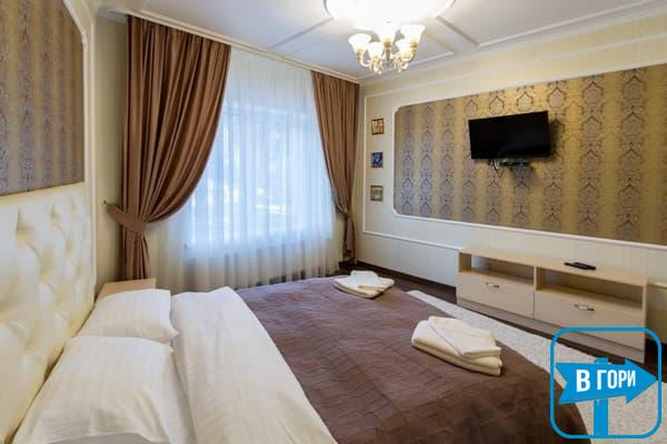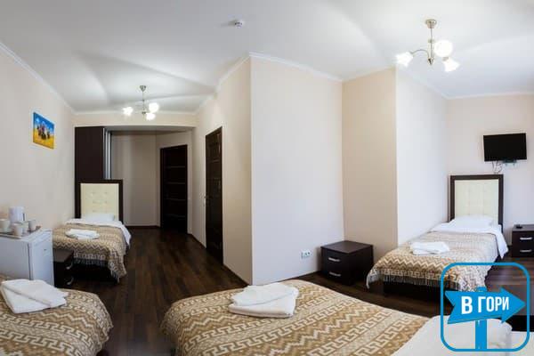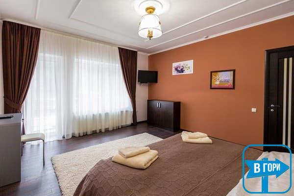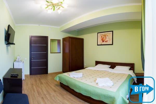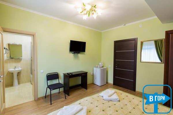 Гостиница насчитывает 8 номеров, где можно разместить от 2-х до 4-х гостей. Стандартные номера оснащены удобной мебелью, телевизором с плоским экраном, доступом Wi-Fi, холодильником и чайным набором. Современные ванные комнаты, удобны и функциональны. В номерах “полулюкс” добавлен мягкий диван. Номера “люкс” дополнены гостиной с мягким уголком и телевизором, а в ванных комнатах -душевые кабины с гидромассажем.