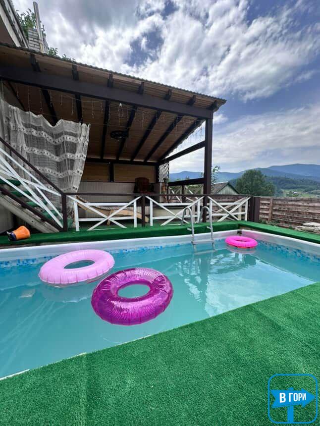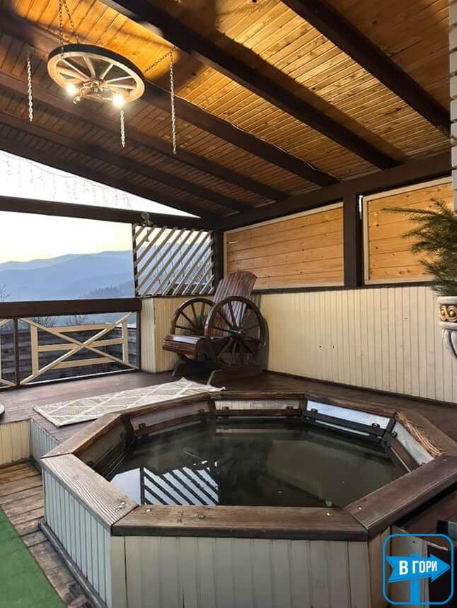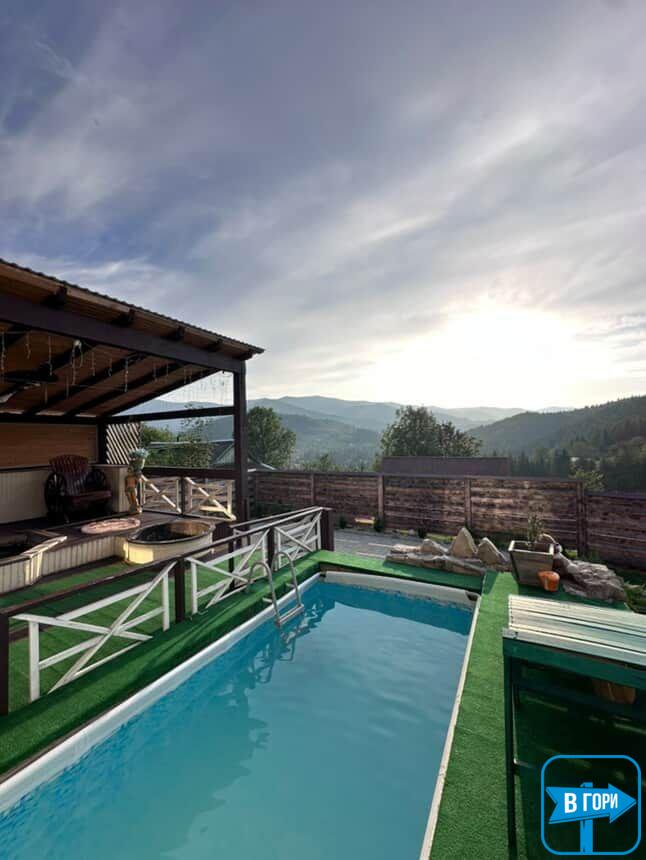 Коттедж находится в Яремче. С невероятным видом на горы и лес. Локация подходит как для зимнего, так и для летнего отдыха.