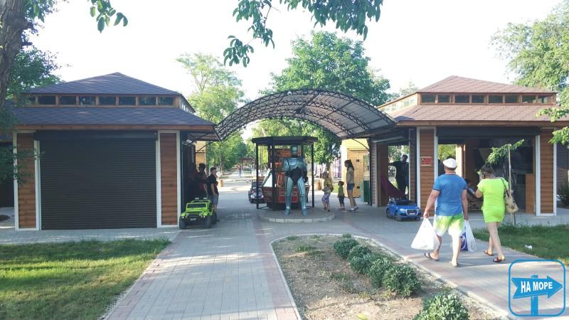 На Аллее сказок, возле архитектурной формы "Солнечные часы", расположена игровая площадка "Робокоп".