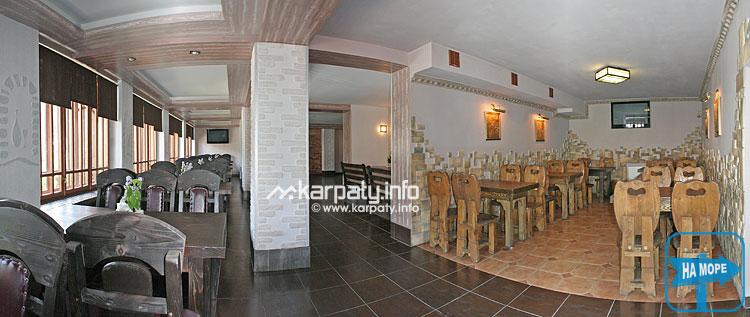 Просторный двухэтажный ресторан на 250 человек, летняя терраса. В залах на первом этаже — современный интерьер, а на втором этаже зал оформлен деревом. Большой выбор алкогольных и безалкогольных напитков. Ежедневно вечером дискотека (все направления музыки). Есть возможность общей аренды для банкетов, свадеб или корпоративных мероприятий. Живая музыка: зимой — ежедневно, летом — на выходные и в праздничные дни.