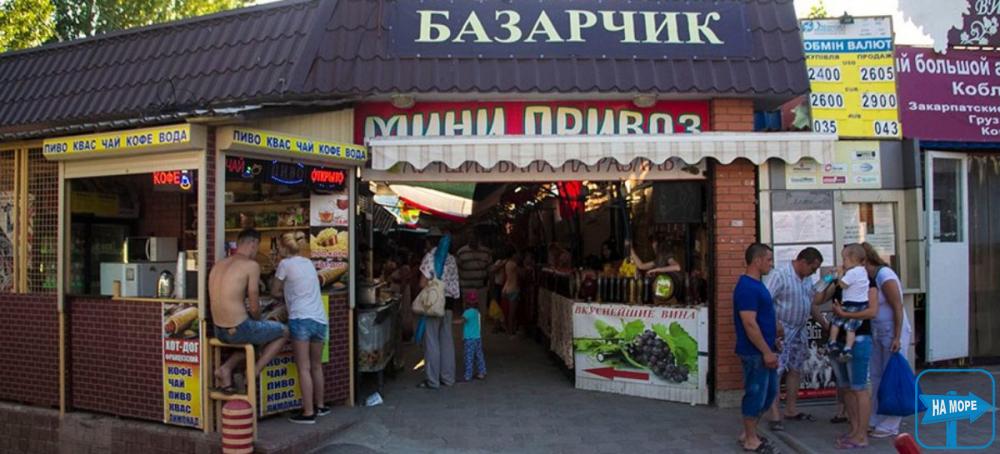 Рынок Мини-Привоз в Коблево на море. Небольшой базарчик в «молдавской» з/отдыха. Место, где также можно поесть (комплексная еда) и купить морепродукты. Здесь продают домашнюю еду (домашняя кухня) — первые и вторые блюда, салаты, мясные изделия, булочки и другое. Второе основное направление торговли этого базарчика — морепродукты. Разная рыба — копченная, вяленая сушенная. Также мидии, рапаны, креветки. Вино на розлив. На Мини-Привозе его также можно купить. Мини-Привоз находится на углу ул. Кишиневская и Курортный проспект (самое начало проспекта). Найти этот рынок не проблема.