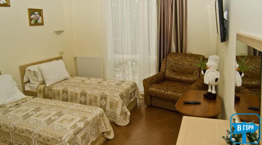 В усіх номерах готелю є балкон із видом на гори. Серед стандартних зручностей – шафа для одягу та телевізор із плоским екраном.