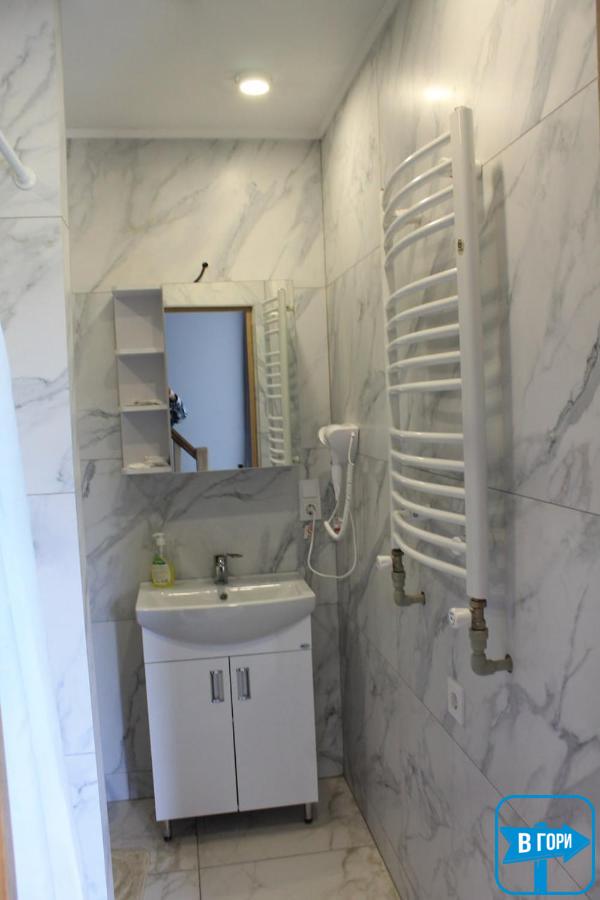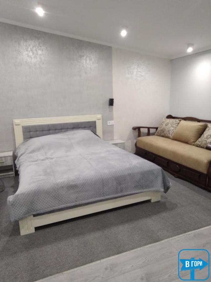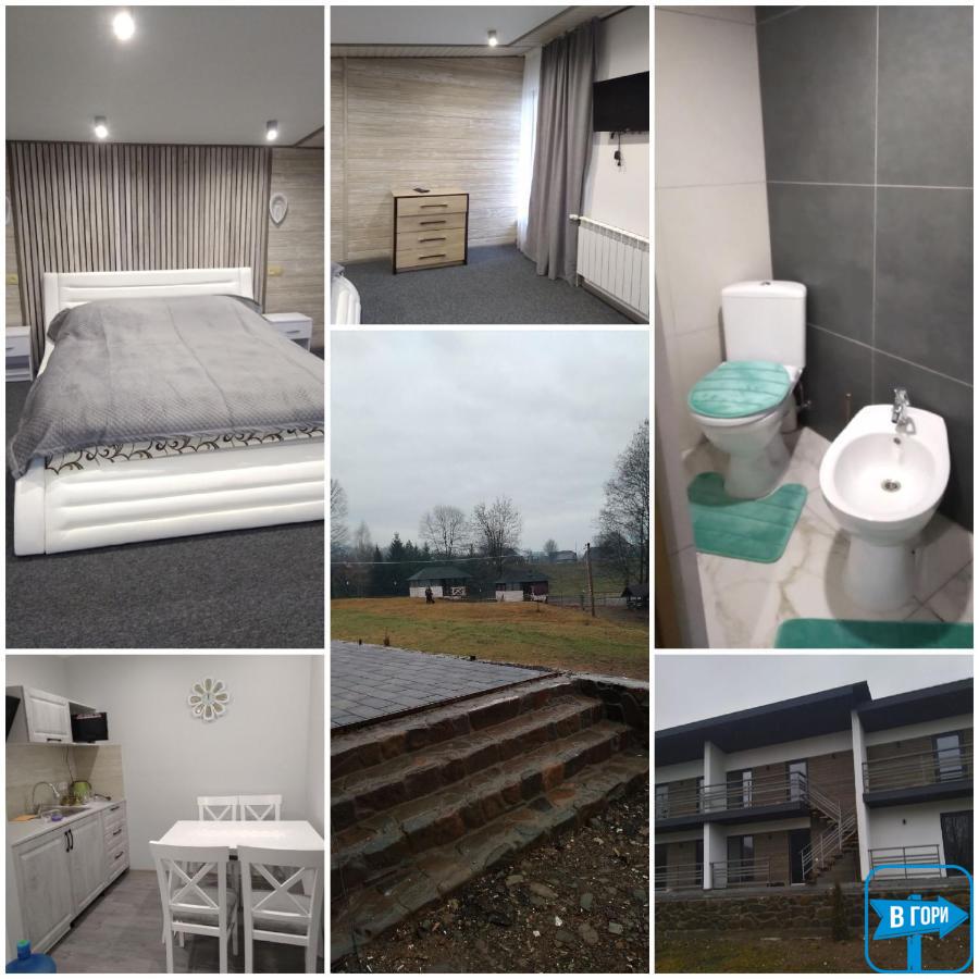 Цей унікальний номер розділений на два поверхи, дозволяючи вам насолоджуватись простором та комфортом. На першому поверсі розташована вітальня з розкладним диваном, шафою для одягу та повністю обладнаною кухнею, включаючи електричну плиту, мікрохвильову піч, холодильник, електрочайник, посуд та мийку. Тут також знаходиться санвузол з душем, туалетом та умивальником. На другому поверсі знаходиться затишна двомісна кімната з двоспальним ліжком, комодом та телевізором для вашого відпочинку. Санвузол на цьому поверсі обладнаний біде, туалетом та умивальником, щоб забезпечити ваш зручний відпочинок. Усі апартаменти мають окремий вхід ззовні, гарантуючи вашу приватність та затишок.