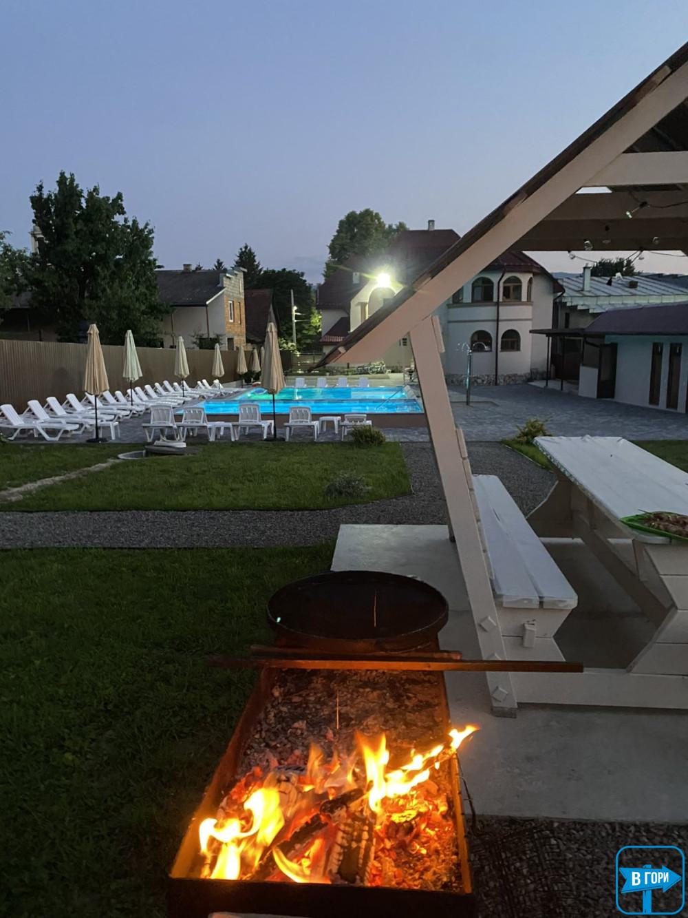 Гості можуть самостійно готувати їжу на обладнаній кухні або скористатися мангалом для приготування страв на відкритому повітрі.